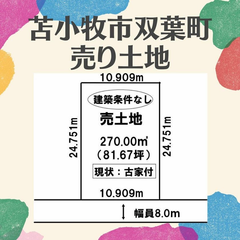 土地面積270.00㎡(81.67坪)北西向きで間口は10.90m!! 土地前面の道路は8.0mとなっております☆
