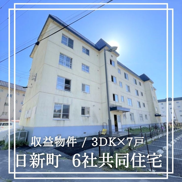 収益物件★苫小牧市の西エリア・日新町の閑静な住宅街にある中古マンション☆3DK×7戸☆JR「糸井」駅まで徒歩20分、道南バス「日新3丁目」停まで徒歩4分☆日新小学校:190mで徒歩3分、明倫中学校:300mで徒歩4分☆徒歩圏内にはコンビニはもちろんスーパー・ドラッグストアなどが建ち並んでおり利便性が良好な立地です☆