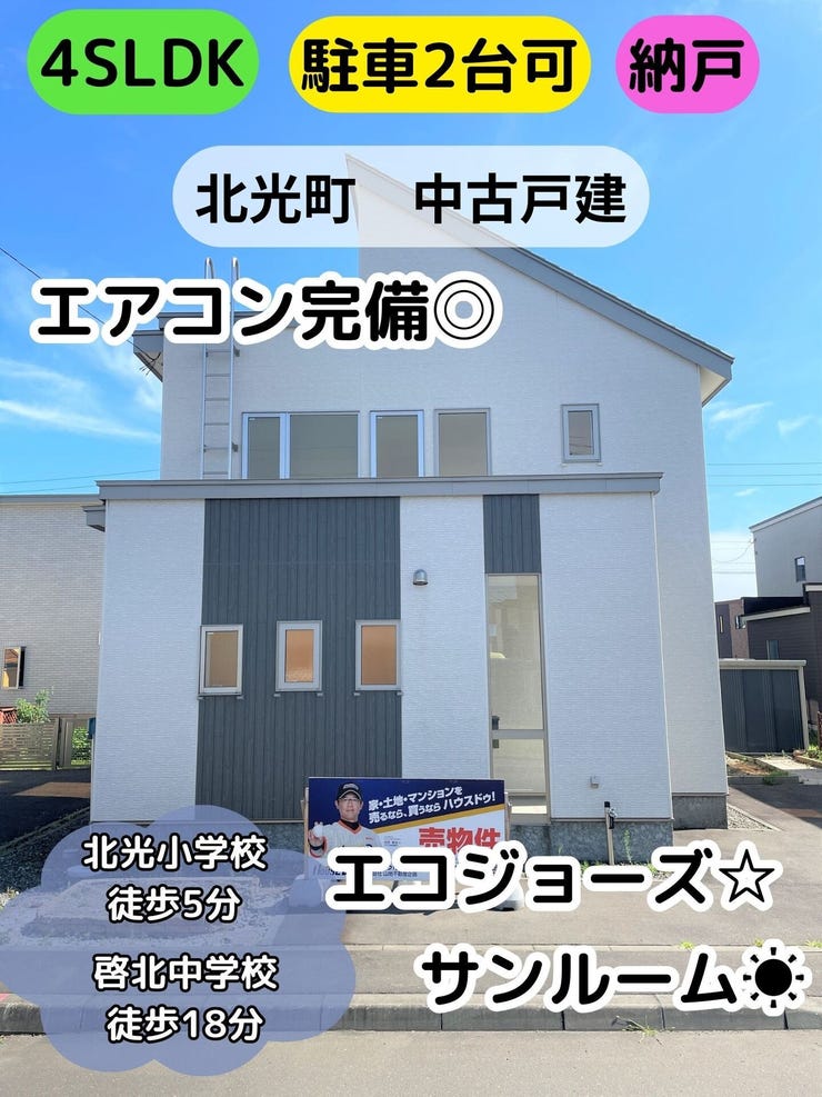 苫小牧市の中央エリア・北光町の閑静な住宅街にある南向きサンルーム付き4SLDK中古戸建★JR「青葉」駅まで徒歩13分、道南バス「北光通」停まで徒歩3分★北光小学校:370m、啓北中学校:1,425m★付近を幹線道路が通っており、徒歩圏内にはドラッグストアやスーパー・クリニックなどがあります★利便性良好な好立地物件★