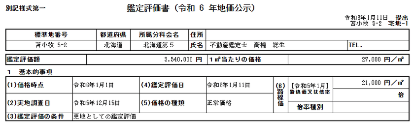 苫小牧市双葉町公示地価