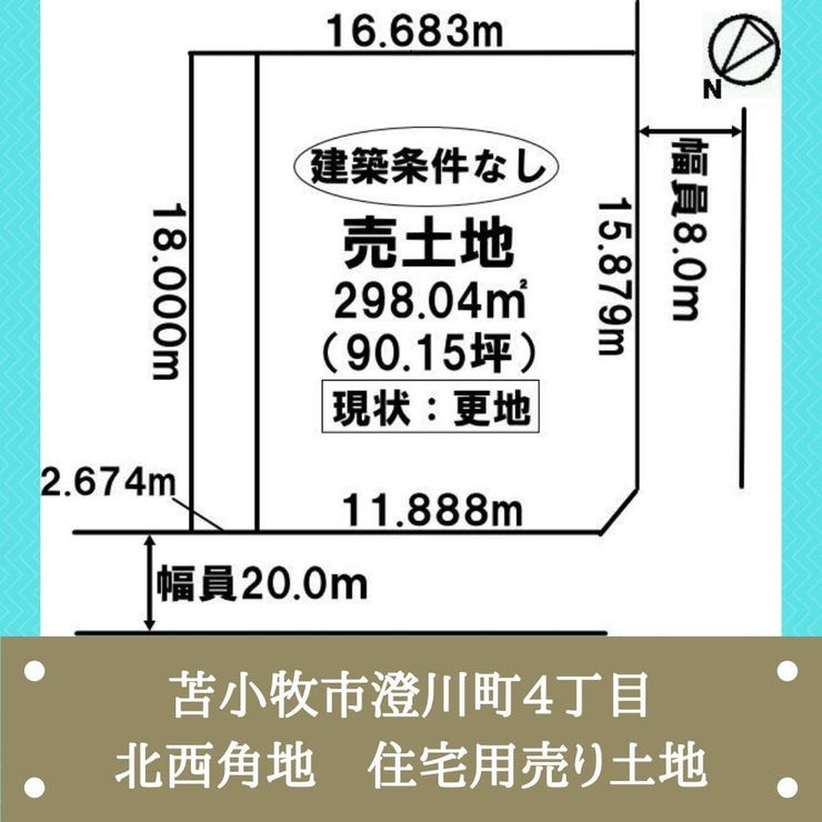 苫小牧市の西エリア・澄川町の閑静な住宅街にある北西角地の建築条件なし住宅用売り土地★ 道南バス「高専通」停まで徒歩2分★徒歩圏内にはコンビニはもちろんスーパー・ドラッグストア・飲食店などの商業施...