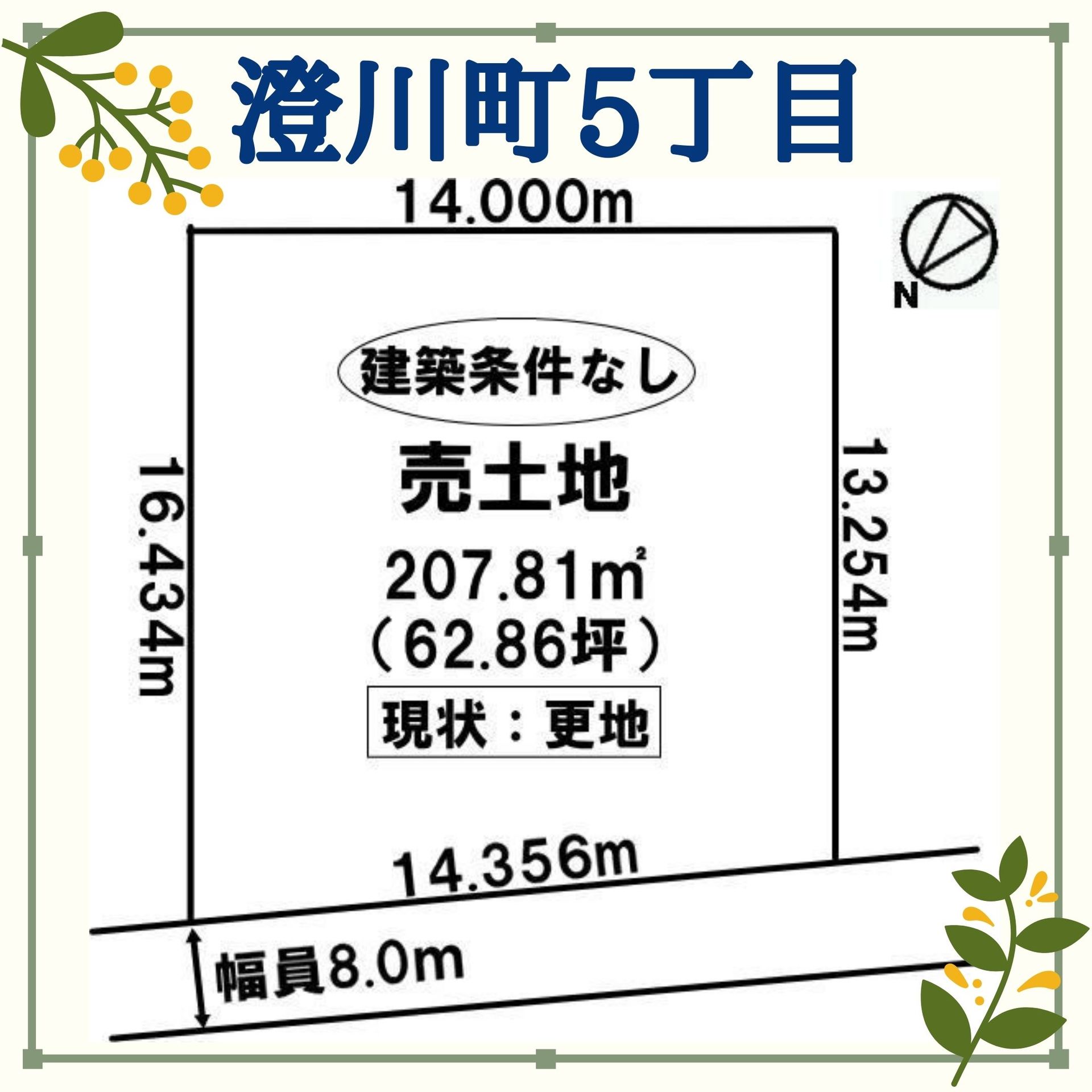 苫小牧市澄川町5丁目の売土地のご紹介です♪ 苫小牧市澄川町土地 建築条件無し☆ 土地面積207.81㎡(62.86坪)北西向きで間口は14.35m 土地前面の道路は8...