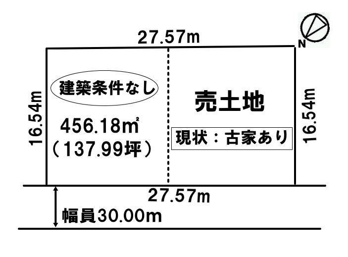 苫小牧市三光町の幅員30.00mの環状線沿いに456.18㎡(137.99坪)の売り土地です。 北西側の道路に27.57m接道され、奥行16.54mの整形地です。現状渡しとな...
