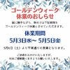 ☆ゴールデンウイーク休業のお知らせ☆ 誠に勝手ながら、弊社では 5月3日(水)~ 5月5日(金) の期間をゴールデンウィーク休業とさせていただきます。 5月6日(土)より平常通り...